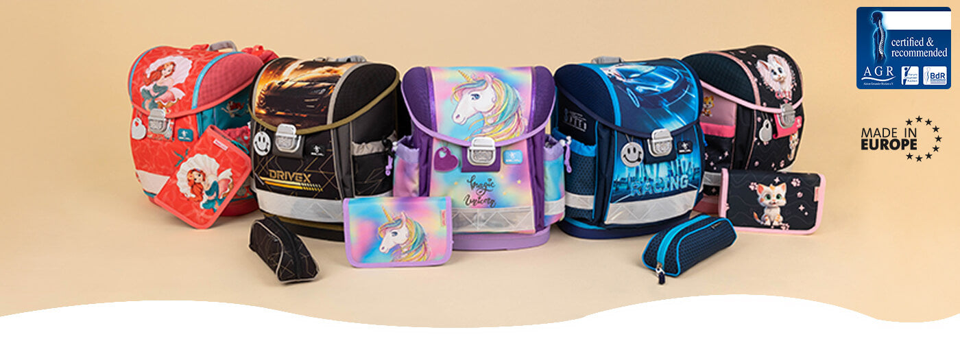 Our Classy bag is a very light school bag, weighing only 930 - 990 grams! They are primarily recommended for children aged 6-8. The bag's robust design and ergonomic structure ensure a stable hold and comfortable wear all-day long!