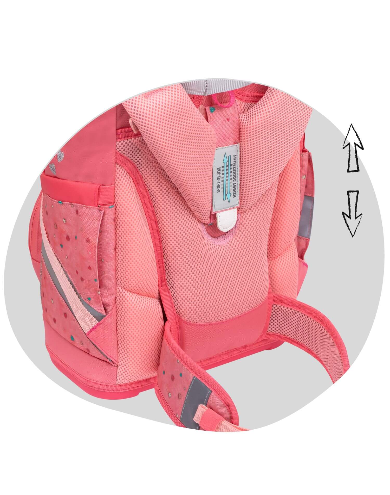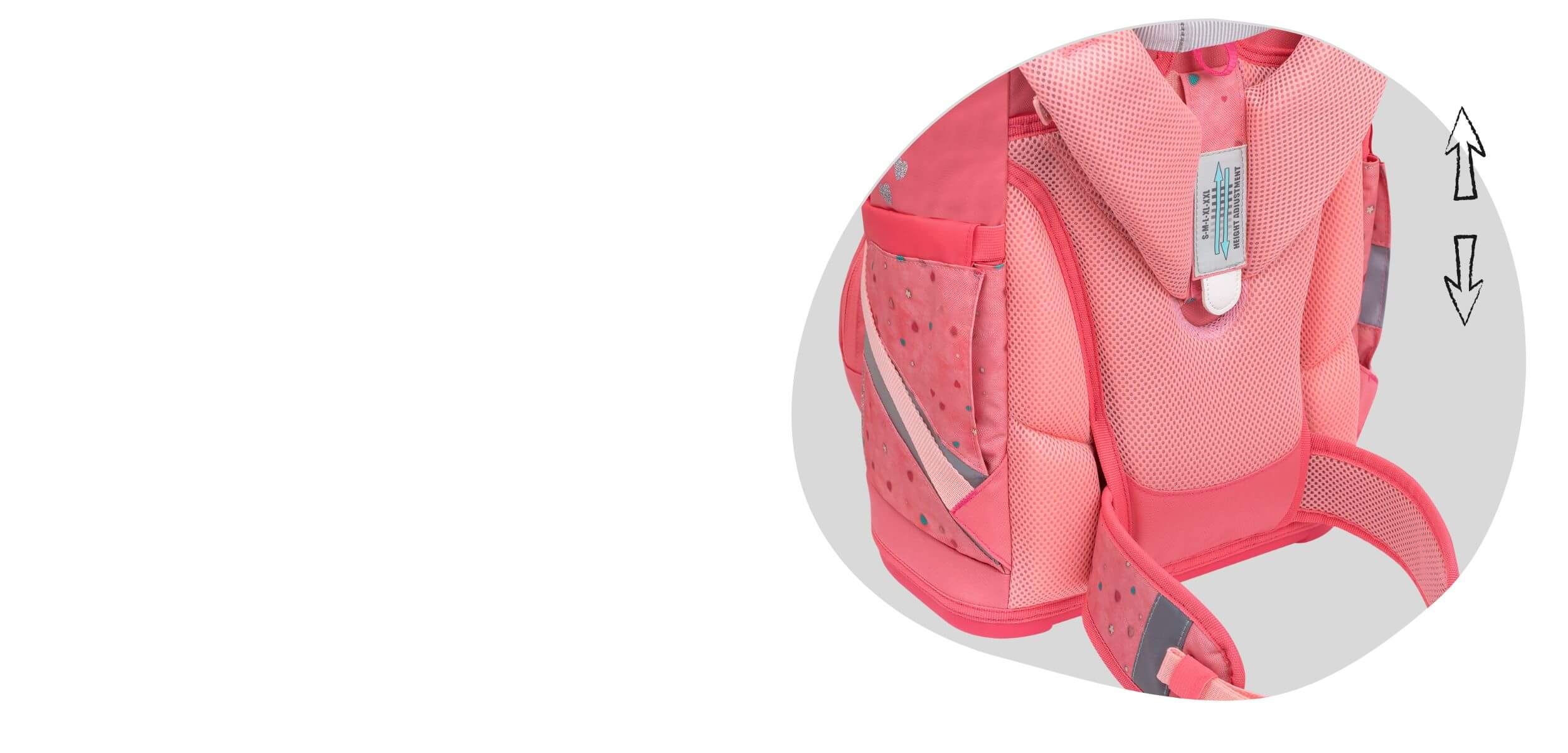 Einige unserer Schulranzen und Kollektionen verfügen über ein anpassbares Rückenpanel, das in mehreren Schritten (S-M-L-XL-XXL) eingestellt werden kann. Die Anpassungsfähigkeit gewährleistet, dass diese Art von Schulranzen auch während des Wachstums des Kindes angenehm zu tragen ist!
