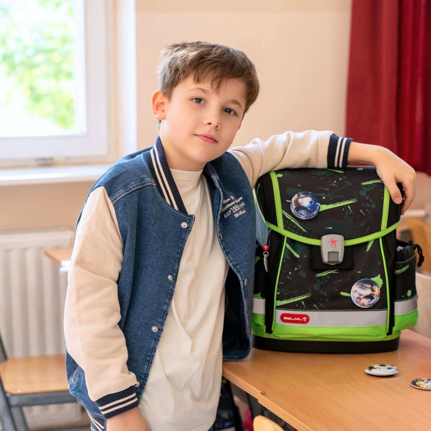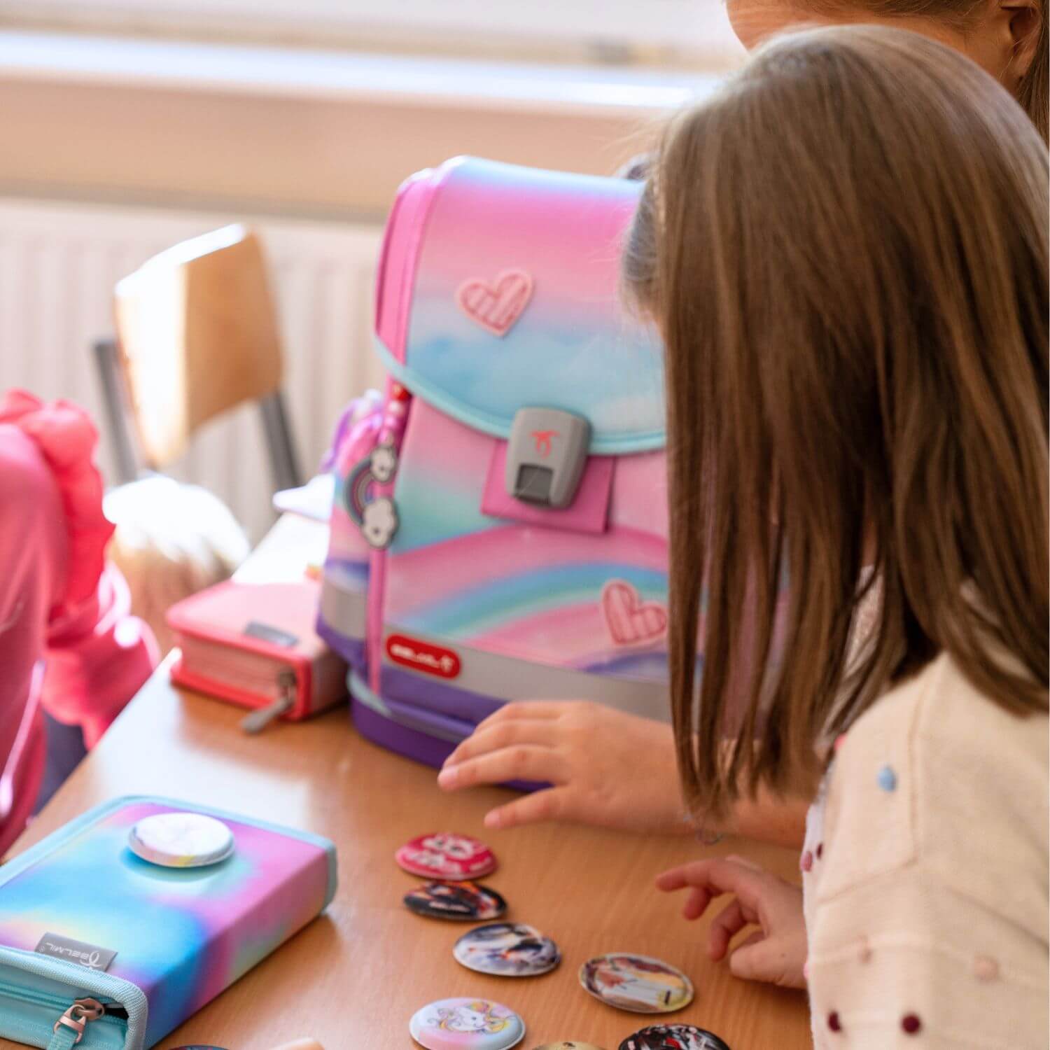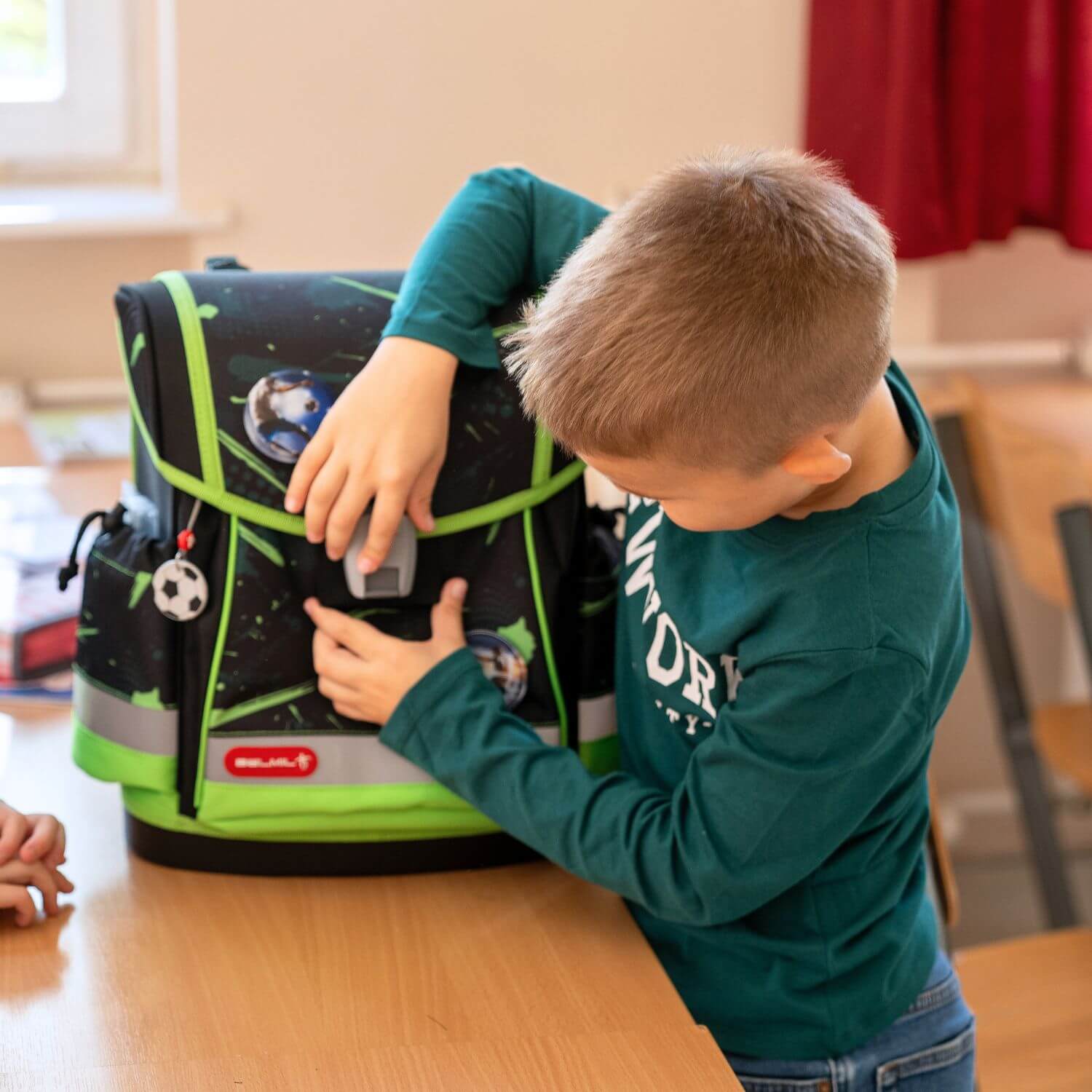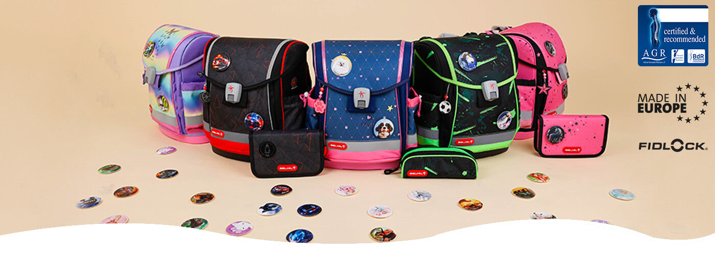 Wir bieten unsere Classy Plus Ranzen mit einem Schlüsselanhänger und einem 3-teiligen Patch-Set an und haben das Schließsystem zusätzlich mit einem FidLock-Magnetschloss ausgestattet!