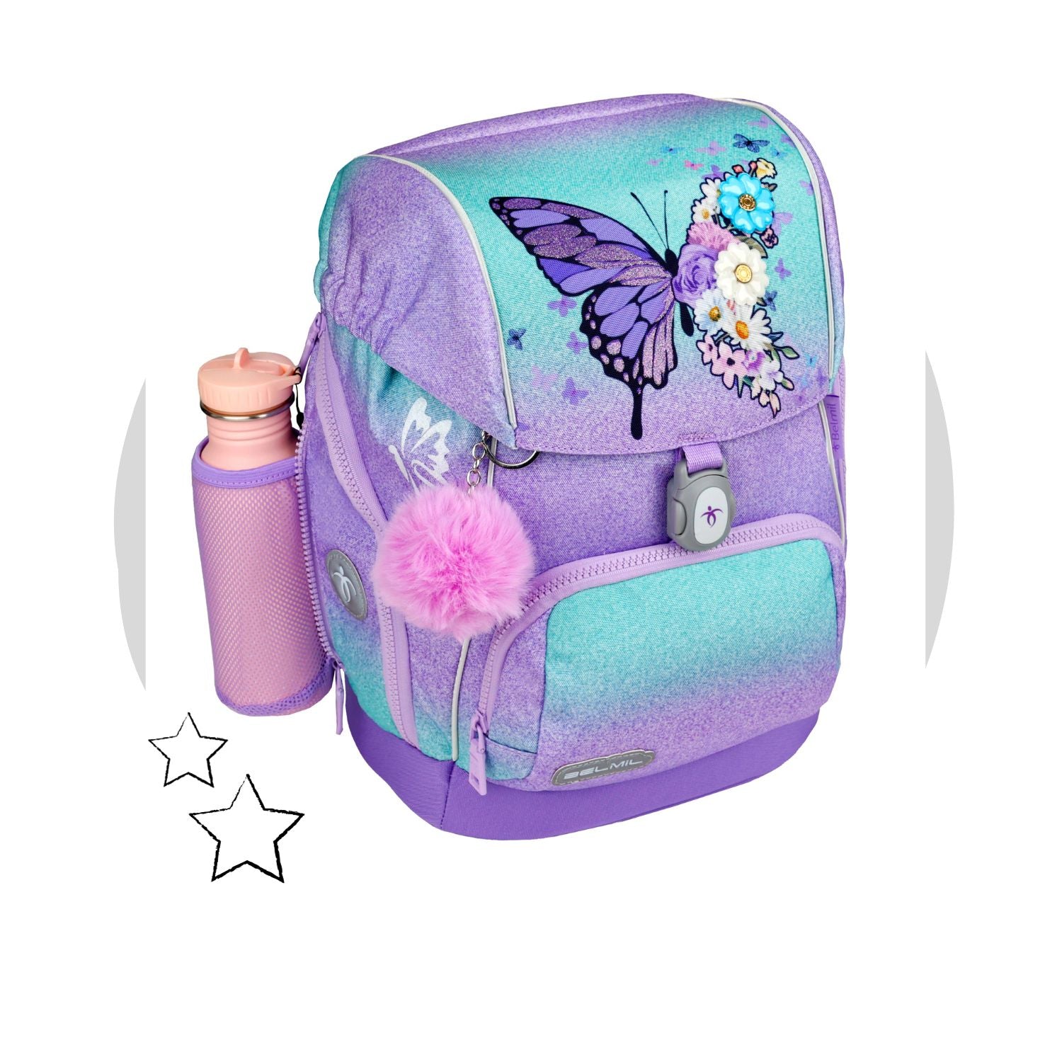 The side pockets of our Comfy Plus bags are perfect for medium-sized (0.7 L) water bottles, which our child can easily take to school! The mesh, elastic design of the side pocket prevents the water bottle from spilling out during transport.