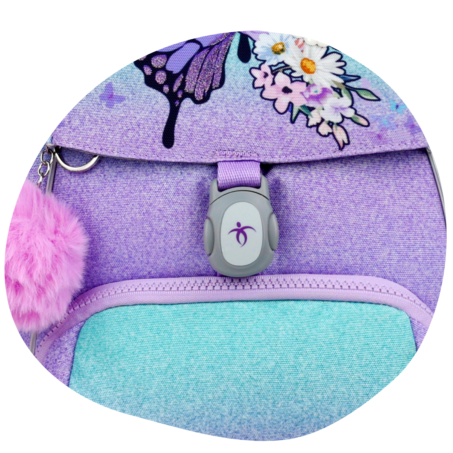 Das im Set enthaltene Federmäppchen passt bequem in die Vordertasche des Rucksacks und nimmt somit im Inneren keinen Platz vor Büchern und Schulmaterialien ein.