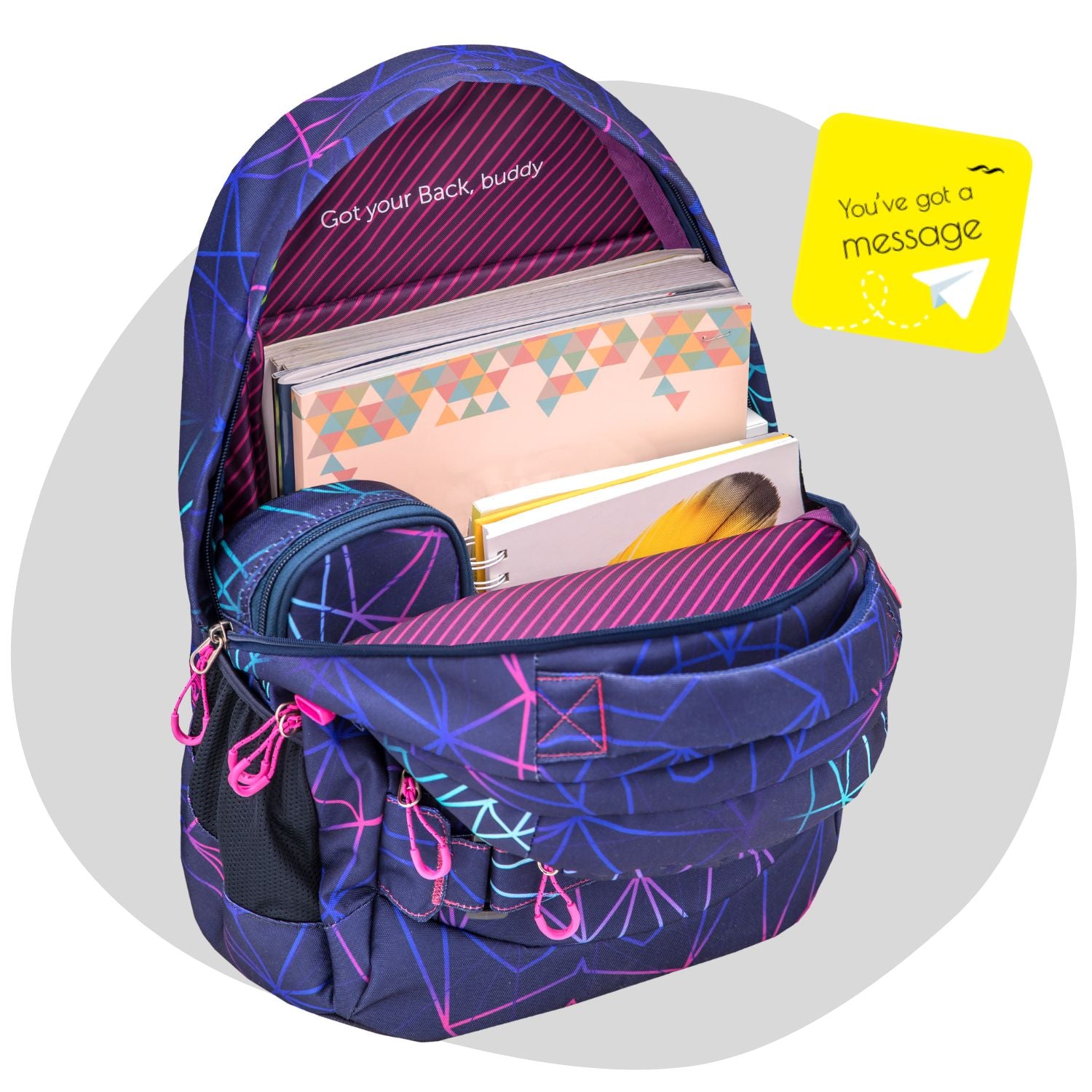 Öffne das Hauptfach und entdecke eine versteckte, witzige Botschaft, die auf dem Futter gedruckt ist. Dieser Rucksack trägt nicht nur das Nötigste bei sich, sondern auch ein Lächeln.