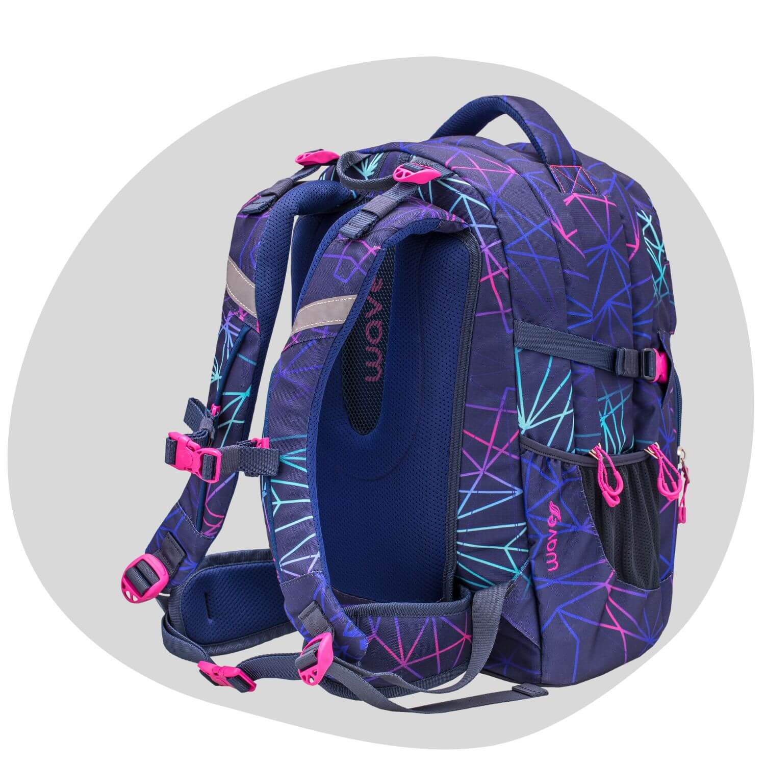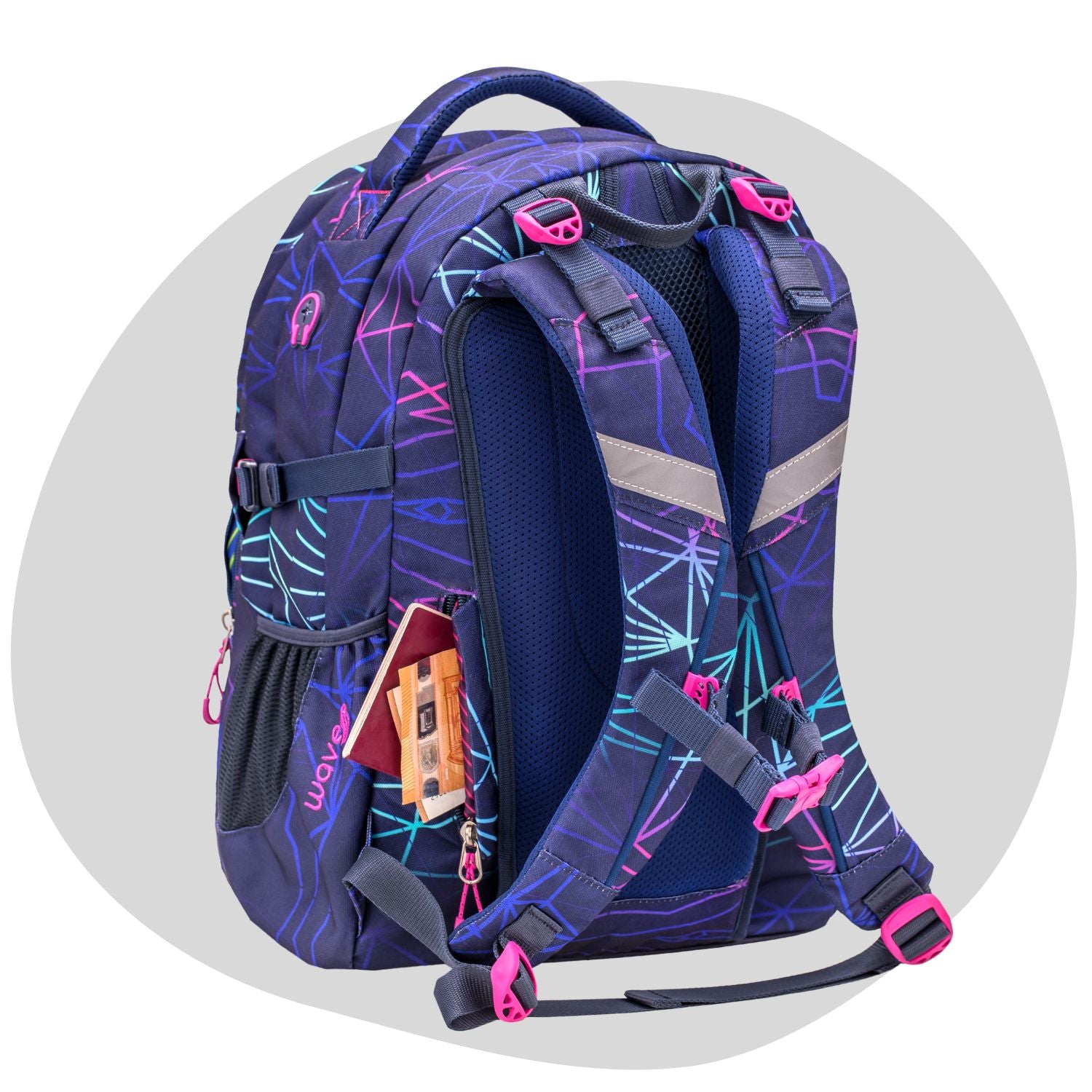 Der Wave Rucksack hat ein dynamisches Design, das auf die Jugend von heute zugeschnitten ist - ab 10 Jahren. Mit seinem topaktuellen Stil und seiner Funktionalität verkörpert dieser Rucksack perfekt den Geist der modernen Generation. Diese Rucksäcke sind für Reisen, Wanderungen und die Schule geeignet. Die atmungsaktive Rückenpolsterung, der verstellbare Brustgurt und die gepolsterten Schultergurte sorgen für einen bequemen und rückenschonenden Tragekomfort.