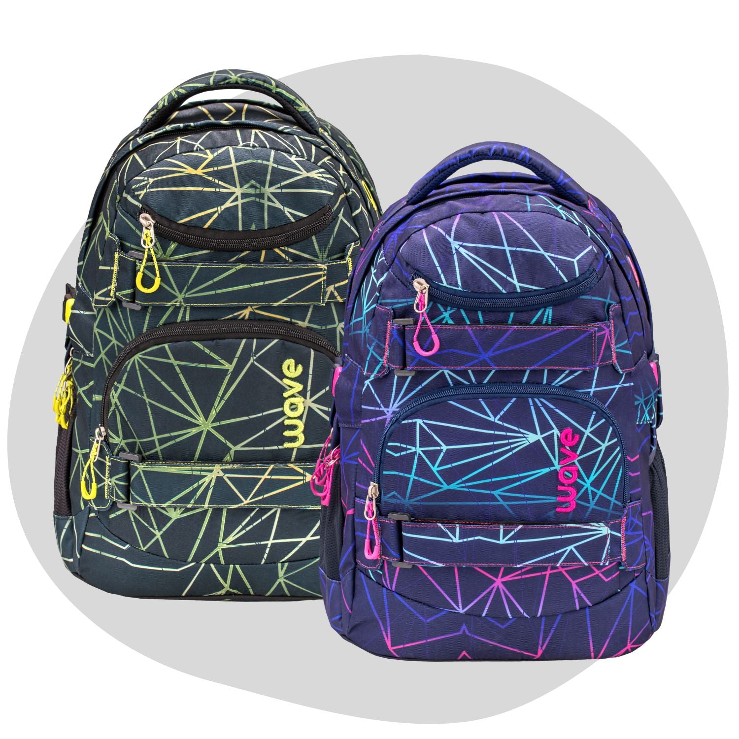 - Wave Infinity Rucksack mit Federmäppchen und Sporttasche - geeignet für Schule, Reise oder Freizeit